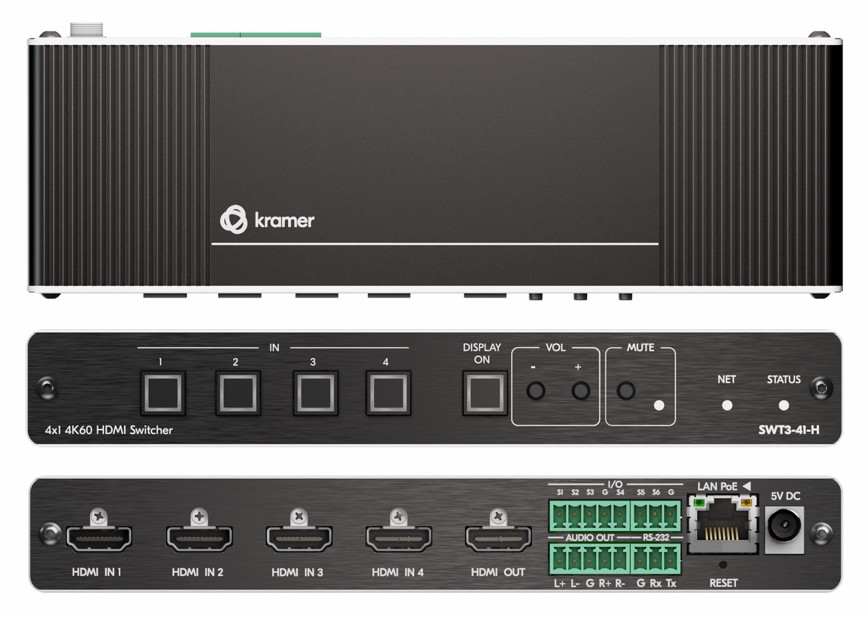 Коммутатор 4х1 HDMI с автоматическим переключением и встроенным контроллером Maestro; коммутация по наличию сигнала, поддержка 4K60 4:4:4, деэмбедирование аудио