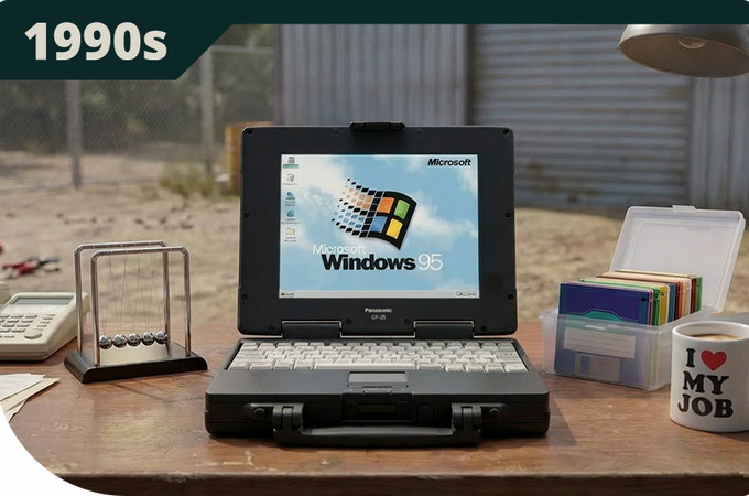 Ноутбуки тогда ещё только зарождались, но, несмотря на свою хрупкость и ограничения, стали незаменимыми инструментами. Вскоре стало ясно, что устройства должны быть такими же прочными, как и условия их эксплуатации, с изначально заложенной защитой от внешних воздействий. Такой подход заложен в нашей ДНК.