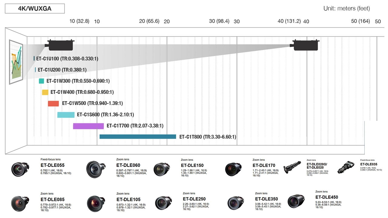 Чтобы облегчить задачу установщика, компания Panasonic предлагает на своем веб-сайте калькулятор проекционного расстояния, который позволяет легко рассчитать проекционное расстояние.
