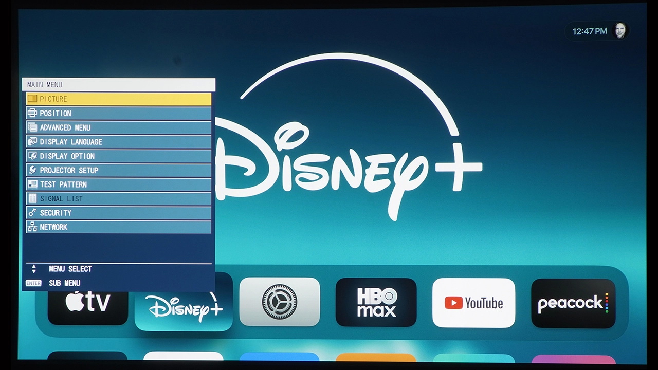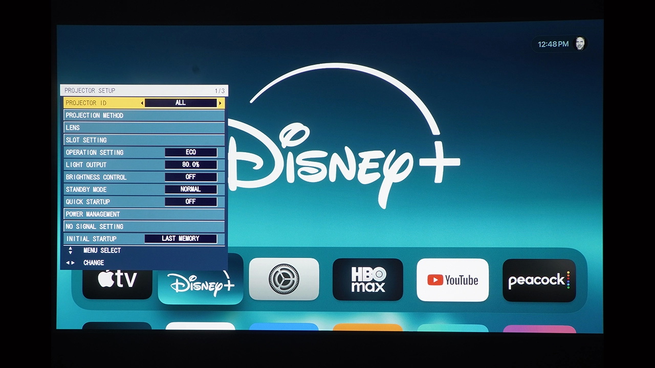 В этом обзоре использовался экран Da-Lite Designer Contour Electrol с диагональю 110 дюймов и соотношением сторон 16:9. В этом экране используется ультрабелое полотно HD Progressive 1.1, разработанное компанией для видео высокого разрешения до 16K. Эта чрезвычайно гибкая система легко монтируется на потолок или стену.