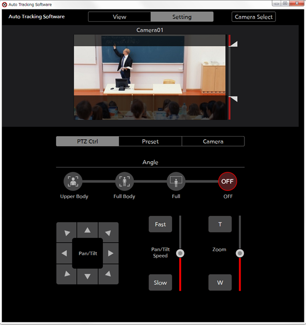 Программное обеспечение AW-SF100G автоматически определяет человека, стоящего перед многозадачной камерой и позволяет камере отслеживать перемещения человека в кадре. Идеальное решение для съемки лекций и конференций, делая управление системой гораздо проще, особенно в условиях когда в аппаратной работает только один сотрудник.