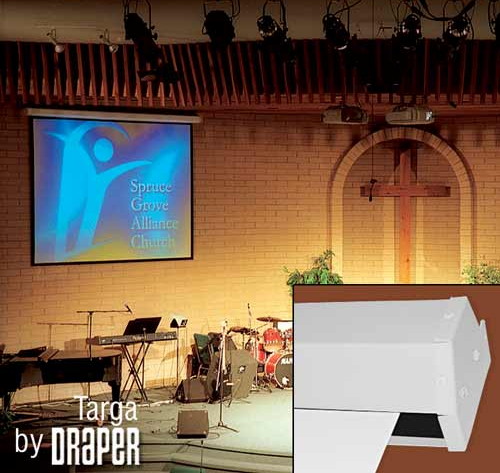Электрический экран Targa приводится в действие легким нажатием кнопки. Мотор автоматически отключается при крайнем нижнем и верхнем положениях. Цельный стальной корпус серого, черного или белого цветов полностью скрывает экран.