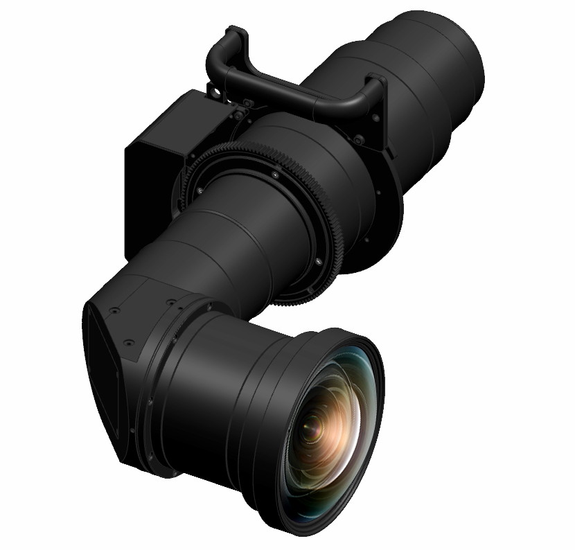 В сочетании с исключительно коротким проекционным соотношением для объектива класса 50 000 лм L-образная конструкция уменьшает глубину установки. Эта экономия глубины может сделать возможным проецирование изображения с высокой яркостью в областях, которые в противном случае были бы слишком узкими для размещения проектора яркостью 50 000 лм. Кроме того, объектив упрощает и ускоряет установку проектора, так как положение изображения легко регулируется после того, как проектор закреплен на месте.