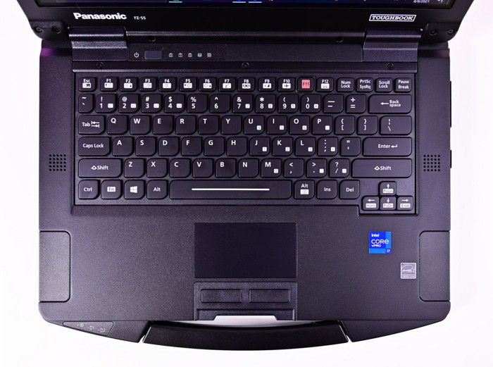 Быть полузащищенным означает соответствовать стандарту MIL-STD 810H при падении с небольшой высоты (90 см), соляному туману, температурным шокам и т. д., а также иметь сертификат IP53. IP53 означает, что Toughbook FZ-55 «защищен от пыли и брызг», прежде всего потому, что порты (входы) закрыты крышками. Клавиатура также защищена от попадания жидкости, дисплей утоплен для защиты от ударов, а корпус изготовлен из прочного магниевого сплава.