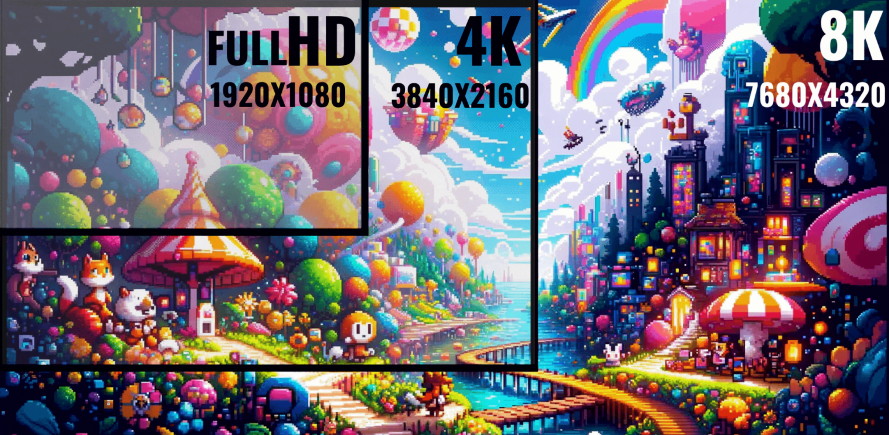 4K и 8K — это разрешения, используемые для цифровых дисплеев, где числа обозначают количество пикселей на каждом дисплее. Разница в количестве пикселей влияет на четкость, детализацию и общее качество изображения отображаемого контента.