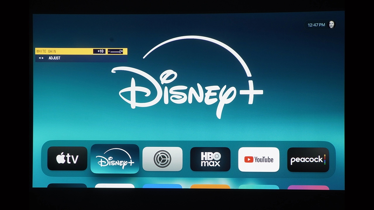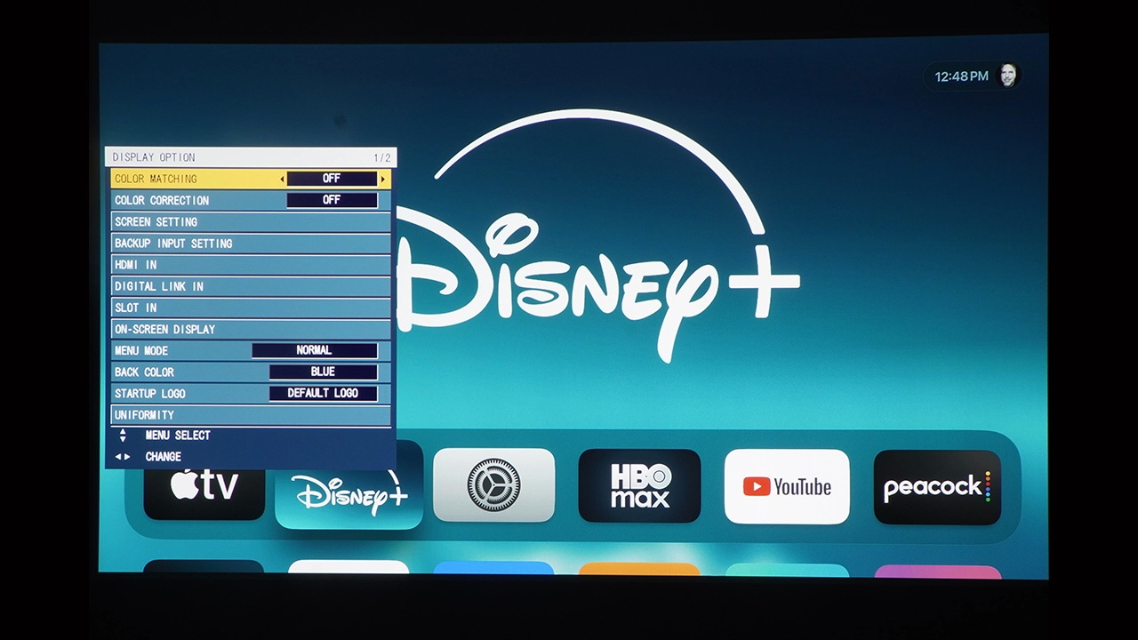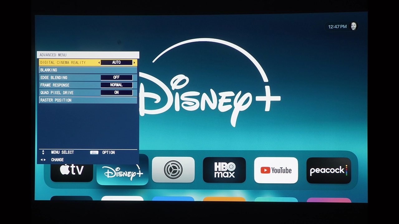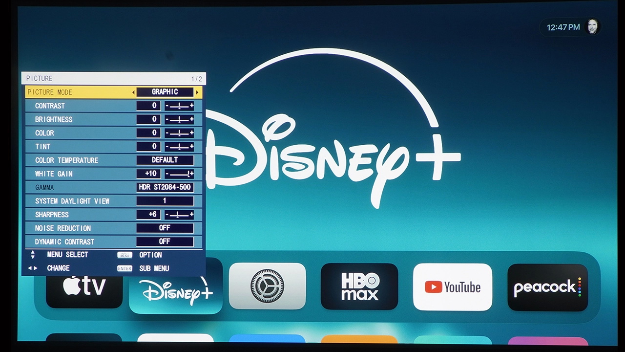 В этом обзоре использовался экран Da-Lite Designer Contour Electrol с диагональю 110 дюймов и соотношением сторон 16:9. В этом экране используется ультрабелое полотно HD Progressive 1.1, разработанное компанией для видео высокого разрешения до 16K. Эта чрезвычайно гибкая система легко монтируется на потолок или стену.
