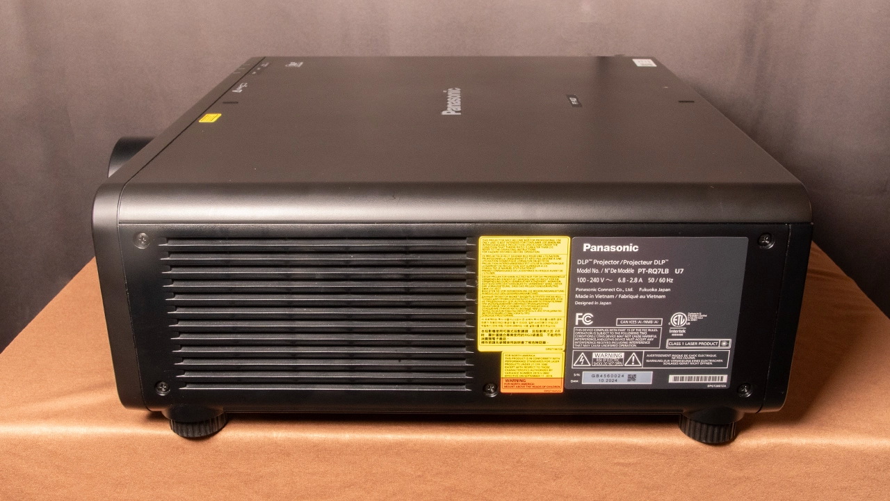 Panasonic PT-RQ7L доступен в белом и чёрном корпусах размером 498 x 170 x 440 мм и весом 16,59 кг. Имейте в виду, что вес проектора зависит от установленного дополнительного объектива.