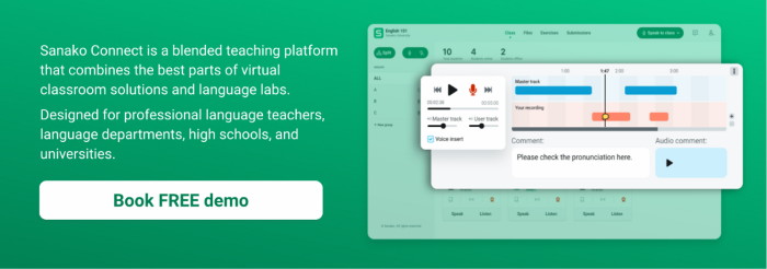 Если вы хотите узнать больше о том, как продукты Sanako помогают преподавателям иностранных языков и студентам, и хотели бы увидеть, какую пользу они могут принести вашему учебному заведению, закажите БЕСПЛАТНУЮ удаленную демонстрацию прямо сейчас, чтобы увидеть их в действии.
