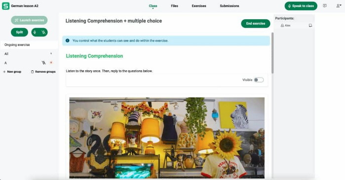 Тестирование и оценивание играют ключевую роль в обучении языку, помогая определить прогресс учащихся и выявить слабые места, которые необходимо устранить на будущих уроках. Тем не менее, стандартные инструменты видеоконференцсвязи не помогают преподавателям в этом должным образом, и значительное количество времени по-прежнему тратится на подготовку, организацию и оценку официальных экзаменов для национальных квалификаций и специальных тестов/викторин.