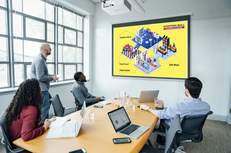Просмотр презентаций. В динамическом режиме высокой яркости PT-VMZ82 выдаёт на экран 7677 ANSI-люмен, что всего на четыре процента ниже заявленных 8000 ANSI-люмен. Тем не менее, это много для большого конференц-зала, лекционного зала или аудитории. Зеленовато-жёлтый оттенок делает фотографии и видео невзрачными, но его будет достаточно для работы с электронными таблицами и большинства занятий.