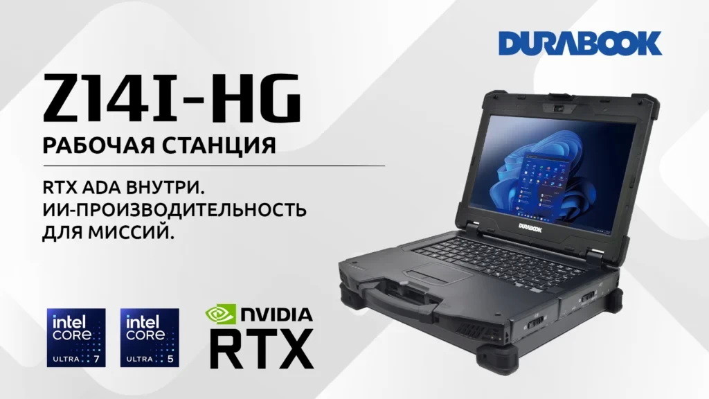 Компания Durabook, мировой бренд защищённых мобильных решений, принадлежащий Twinhead International Corporation, сегодня объявила о выпуске новой полностью защищённой мобильной рабочей станции Z14I-HG. Оснащённая процессорами Intel Core Ultra со встроенным NPU Intel AI Boost и графическими процессорами NVIDIA RTX поколения Ada, модель Z14I-HG обеспечивает до 682 TOPS производительности ИИ, а также ускорение графики уровня рабочей станции непосредственно на периферии (edge). Это позволяет выполнять ресурсоёмкие задачи, такие как рендеринг 3D в реальном времени, инференс ИИ, компьютерное зрение, моделирование цифровых двойников и расширенная аналитика данных, непосредственно на месте без зависимости от облачной инфраструктуры.